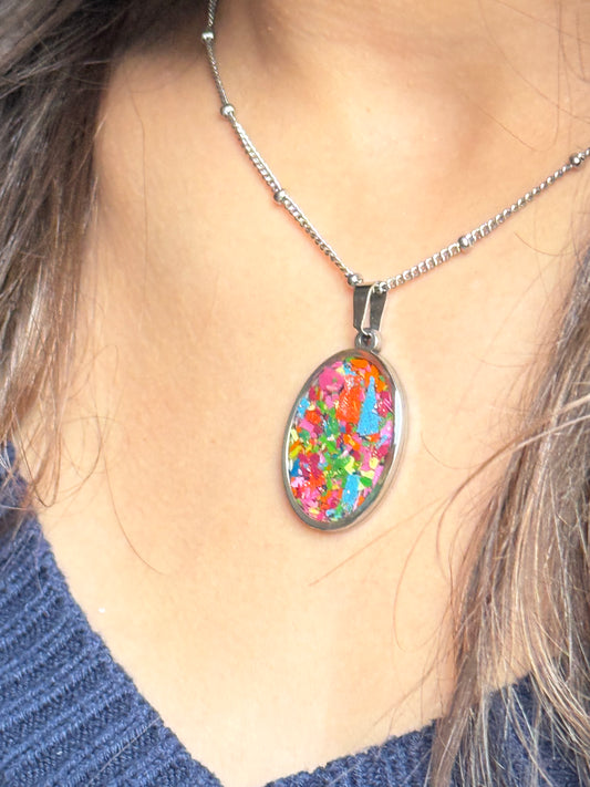 Square Pendant and Hook Earrings Gift Set (Multicolor)