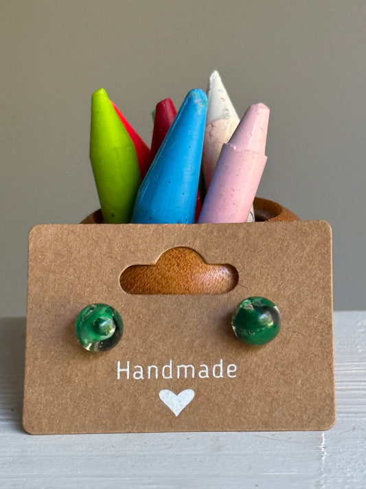 Small Crayon Globe Studs (Dark Green)