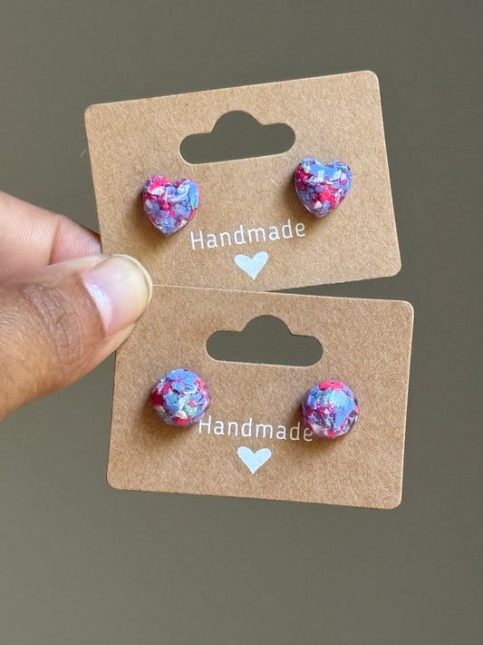 Small Heart Crayonfetti Studs (Caribbean Sea)
