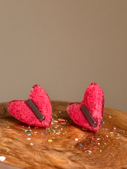 Small Resin Heart Studs (Bold Berry)