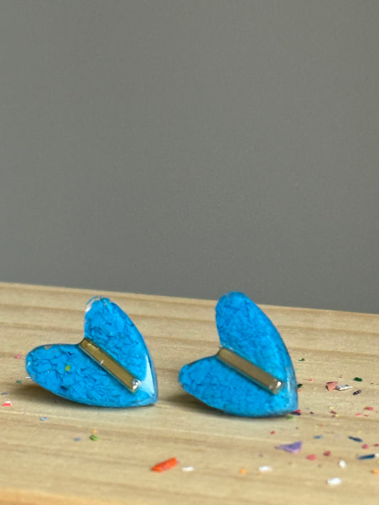 Sky Blue Heart Studs (Gold)