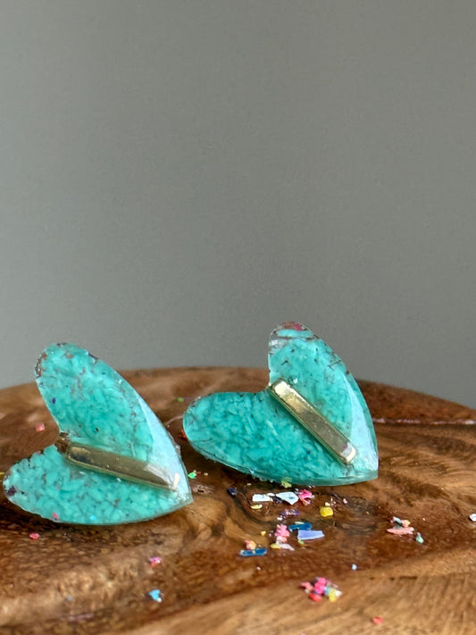 Turquoise Heart Studs (Gold)