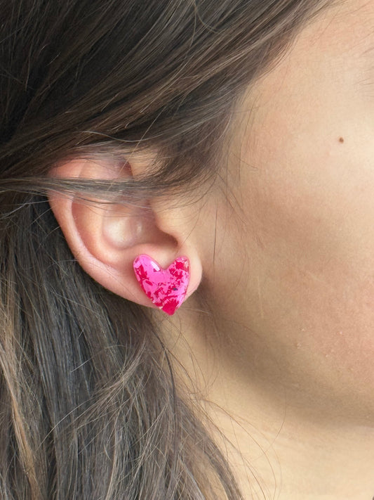 Pink & Red Heart Studs (Lg)