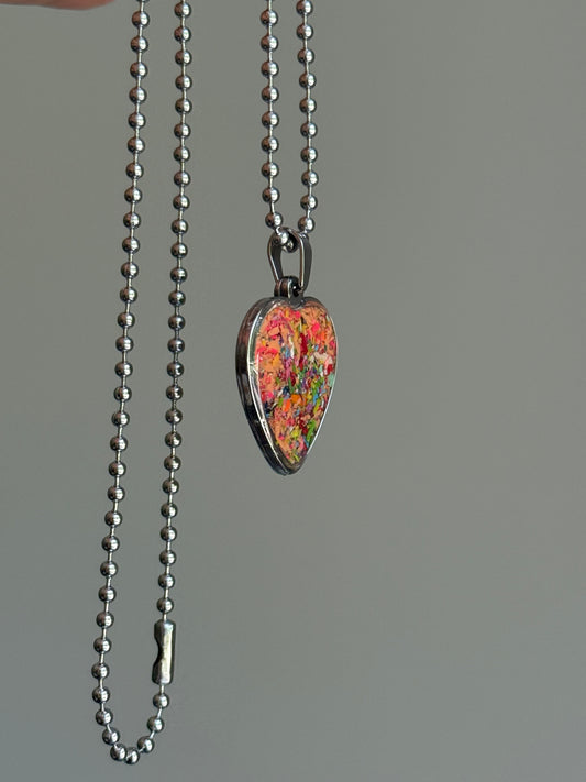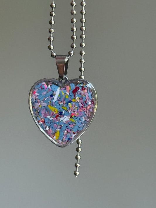Joy Crayon Heart Pendant (Grey Lilacs)