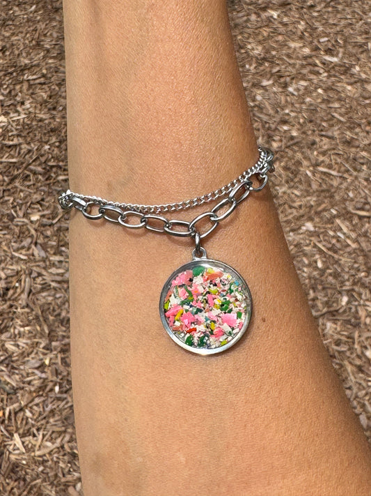 • Pulsera de cadena con confeti de crayón en color verde azulado verdadero