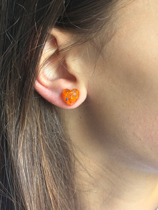 Freckled Orange Heart Studs