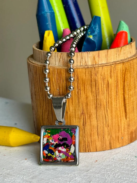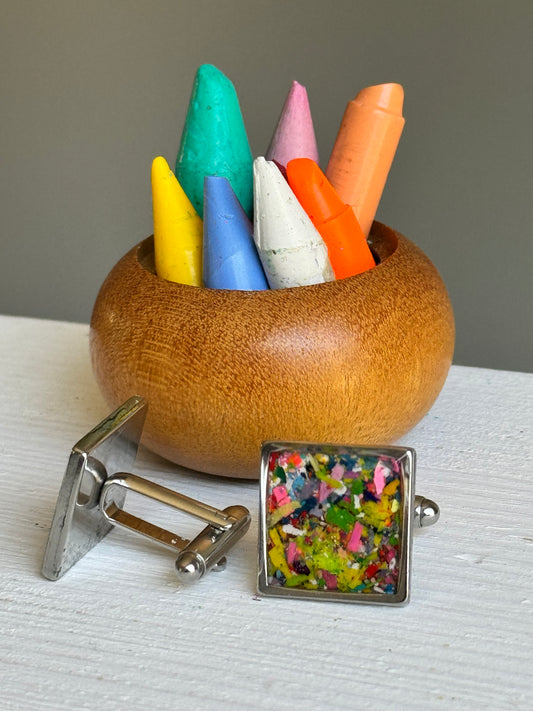 Tú eliges tu estilo y nosotros los colores. ¡Sorpresa! Tu pieza será tan colorida como la de la imagen, pero los colores finales variarán levemente porque colocamos a mano todas las virutas de crayón. El resultado será colorido, divertido y exclusivamente tuyo. Esa es la belleza de los artículos hechos a mano: no hay dos iguales.