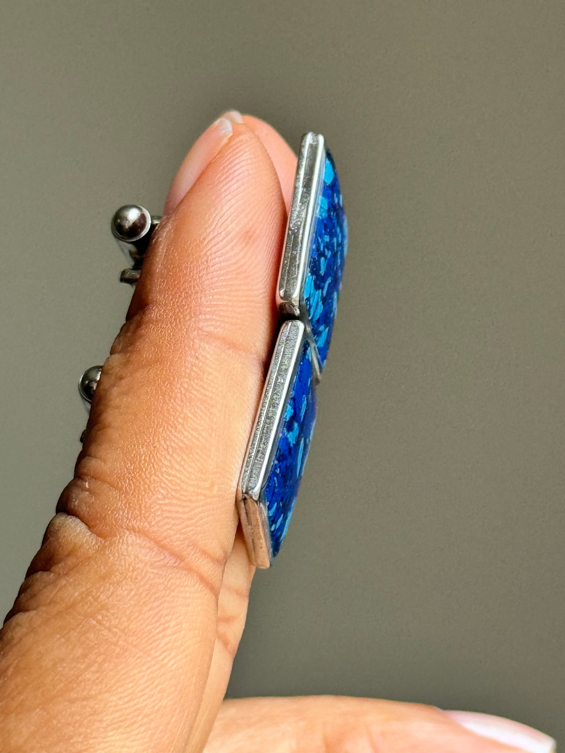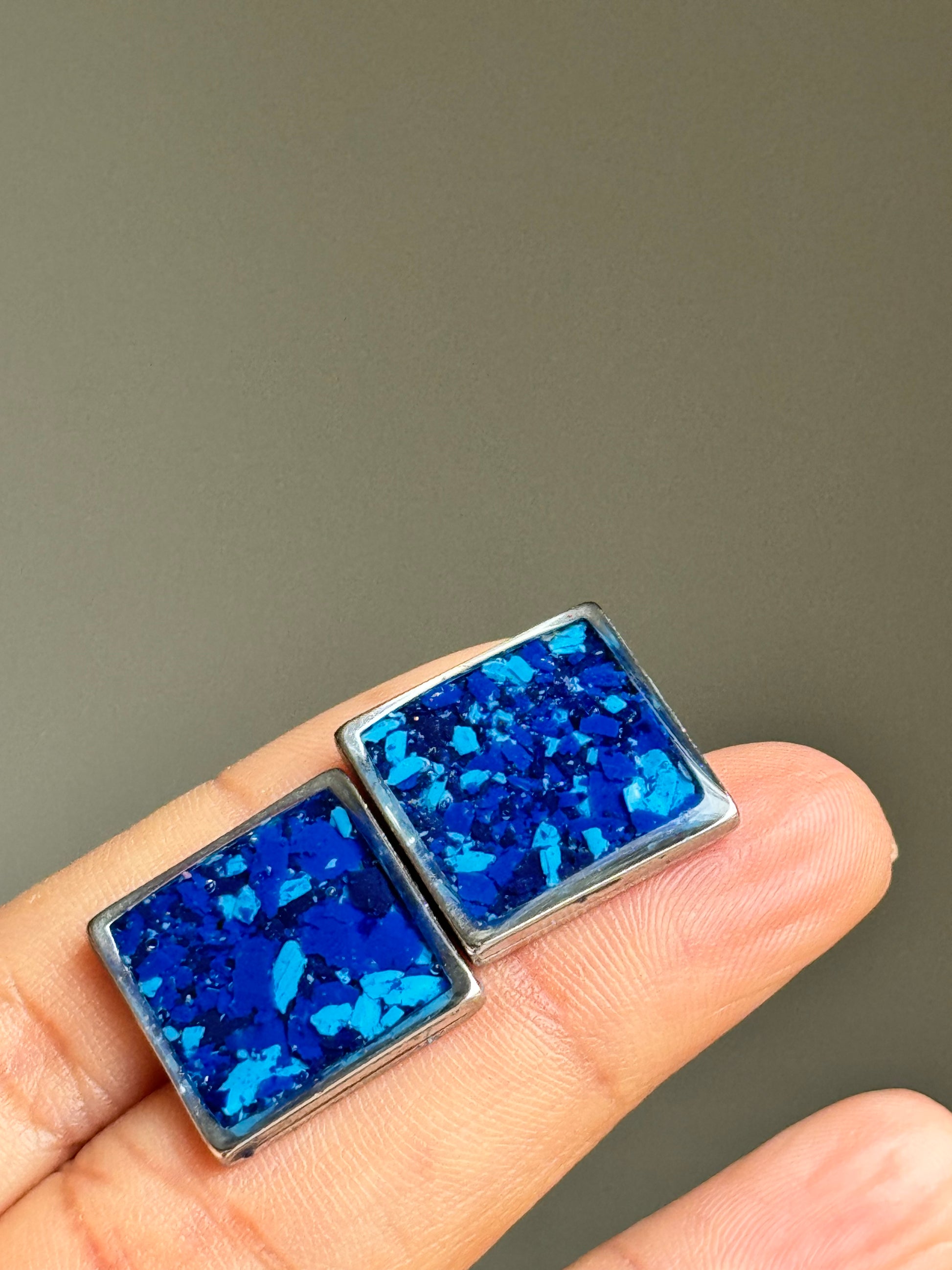 Gemelos cuadrados de acero inoxidable en tonos verdes, azules y blancos brillantes. Los crayones están colocados a mano para crear un aspecto texturizado y moderno.