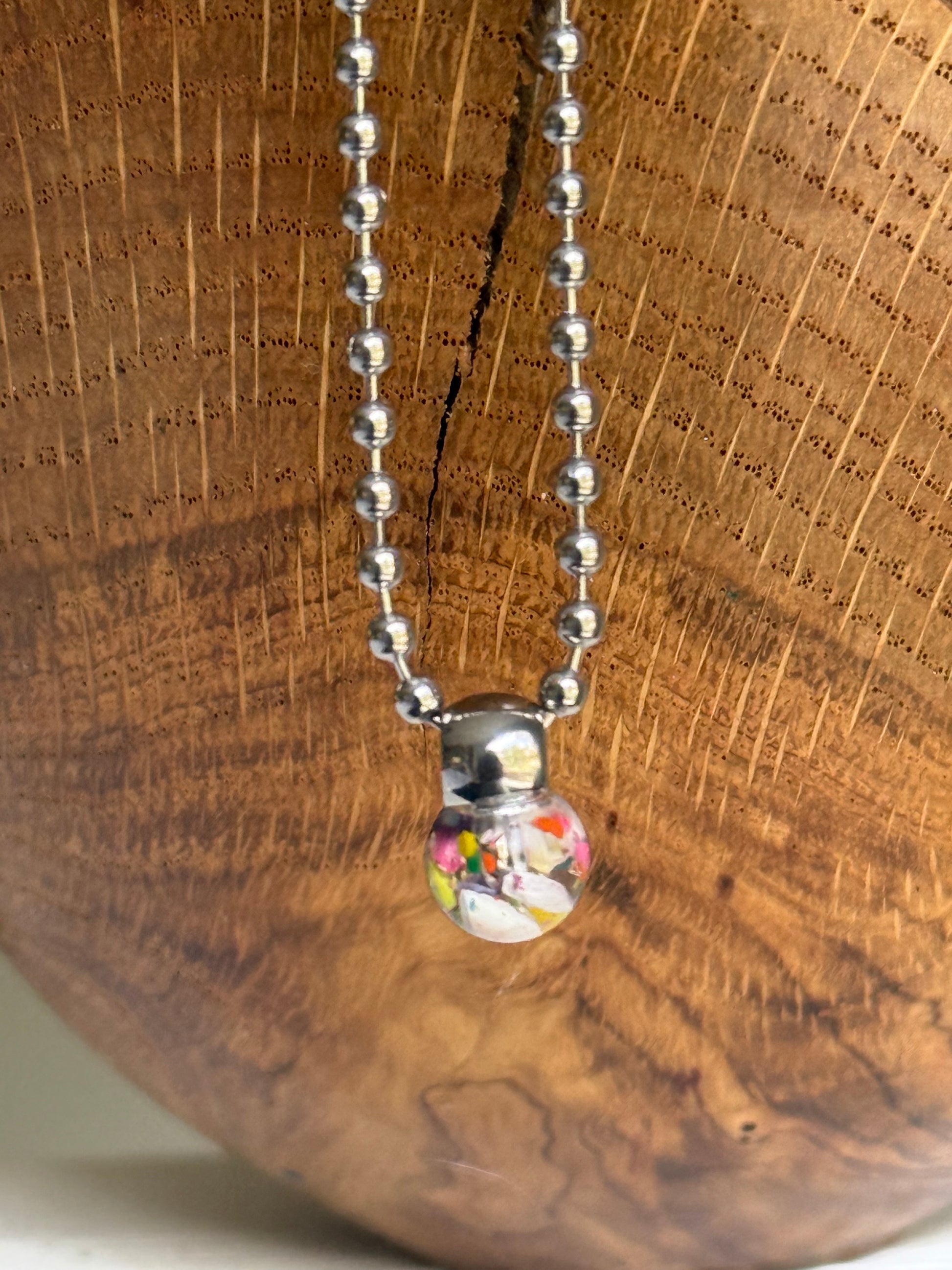 Elegante y colorido, este mini colgante de corazón es una carta de amor y una oda a la inocencia y los recuerdos de tu infancia.