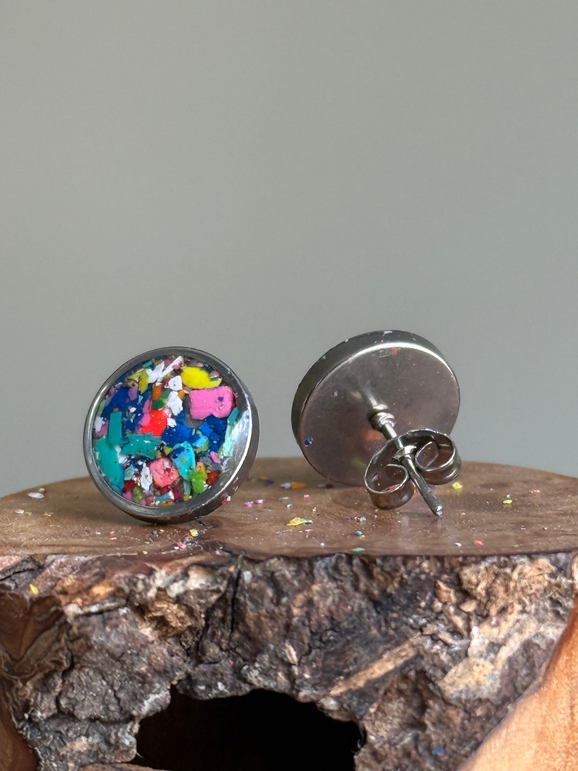 Estos pendientes redondos con marco de acero inoxidable son bonitos y modernos. Ideales para orejas sensibles.