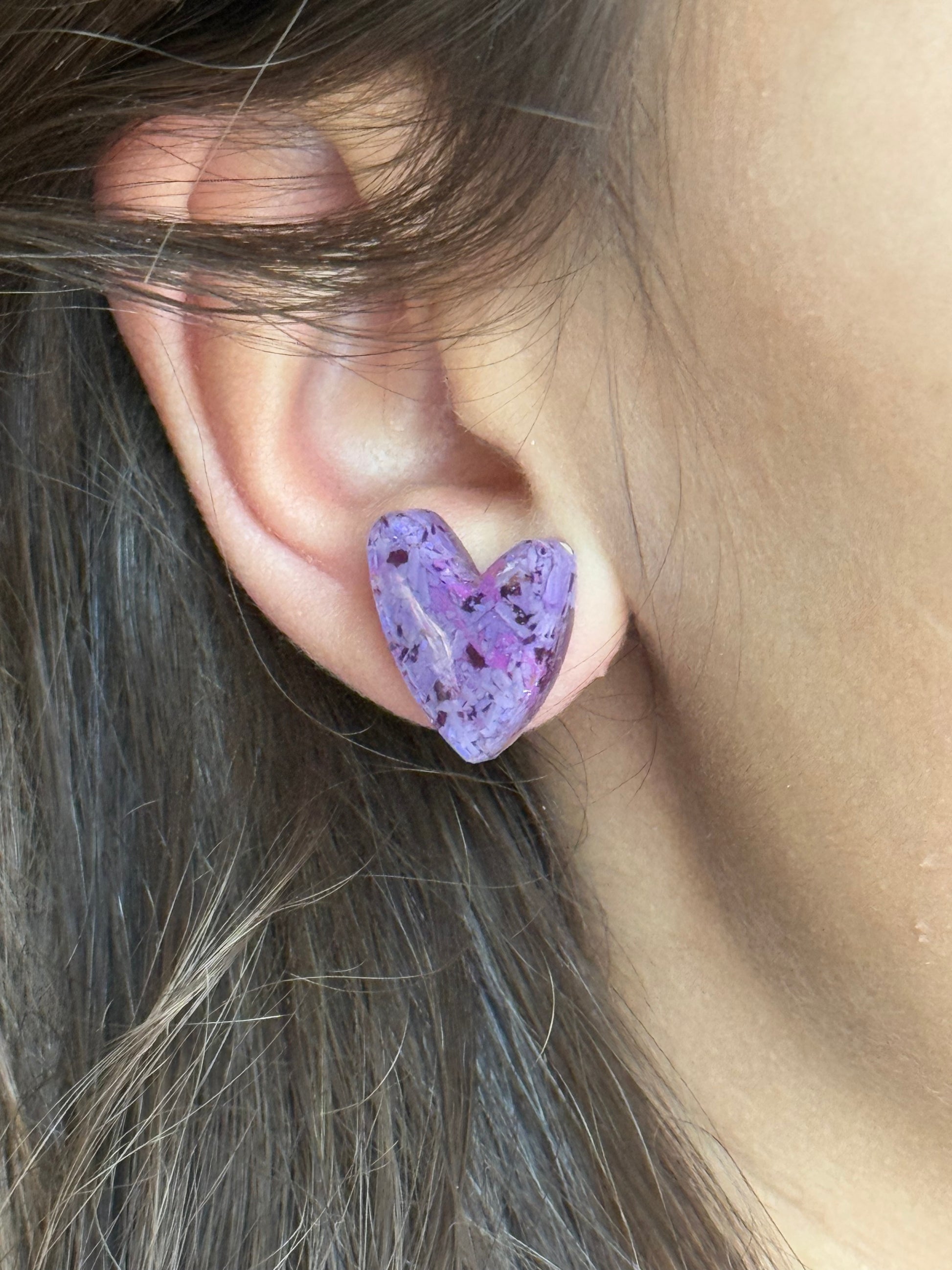 Lilac & Violet Heart Studs (Lg)
