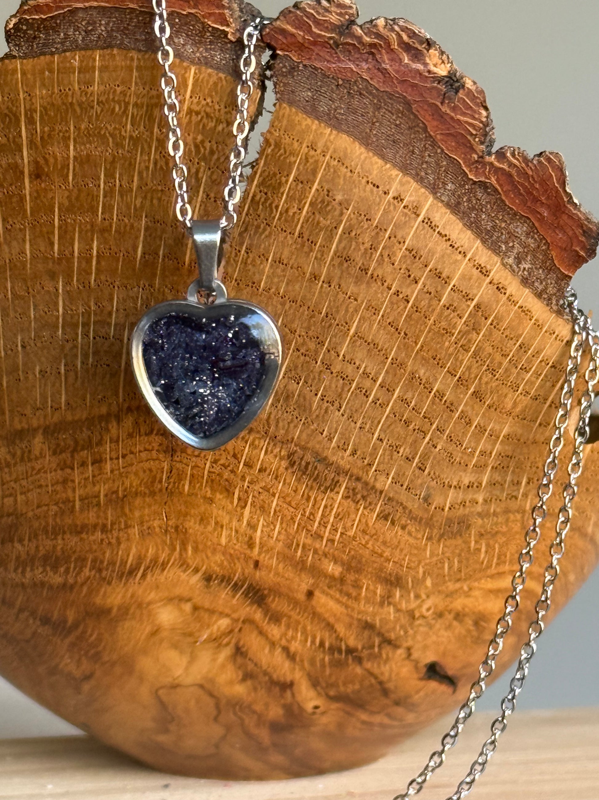 Made with shimmery black crayon shavings, this Heart Pendant is small yet elegant.