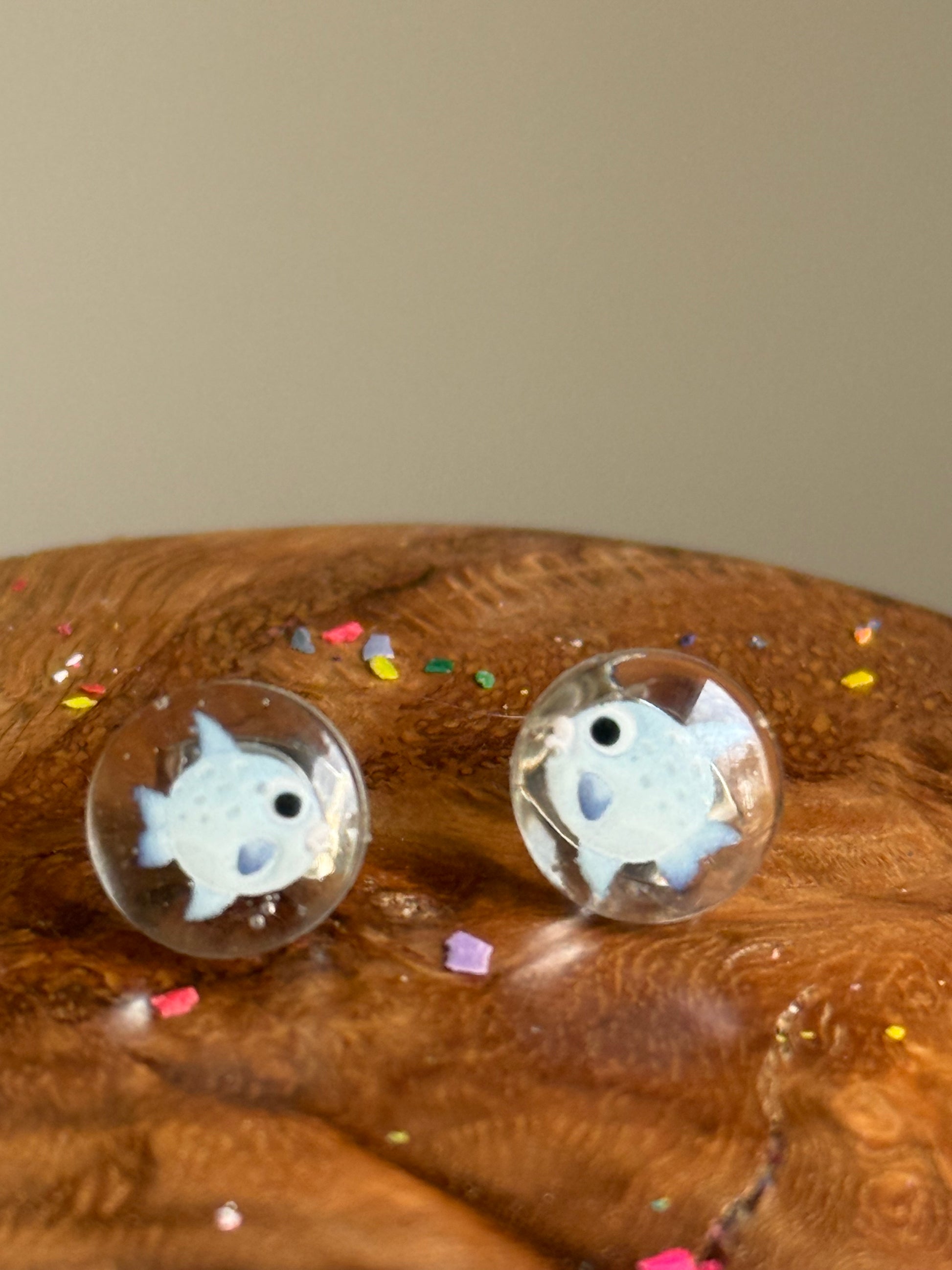Etta is frozen mid-swim, suspended in a glossy resin bubble. Lightweight, whimsical, and truly unexpected, these studs are for anyone who loves playful jewelry. As always, we used out hypoallergenic stainless steel posts.