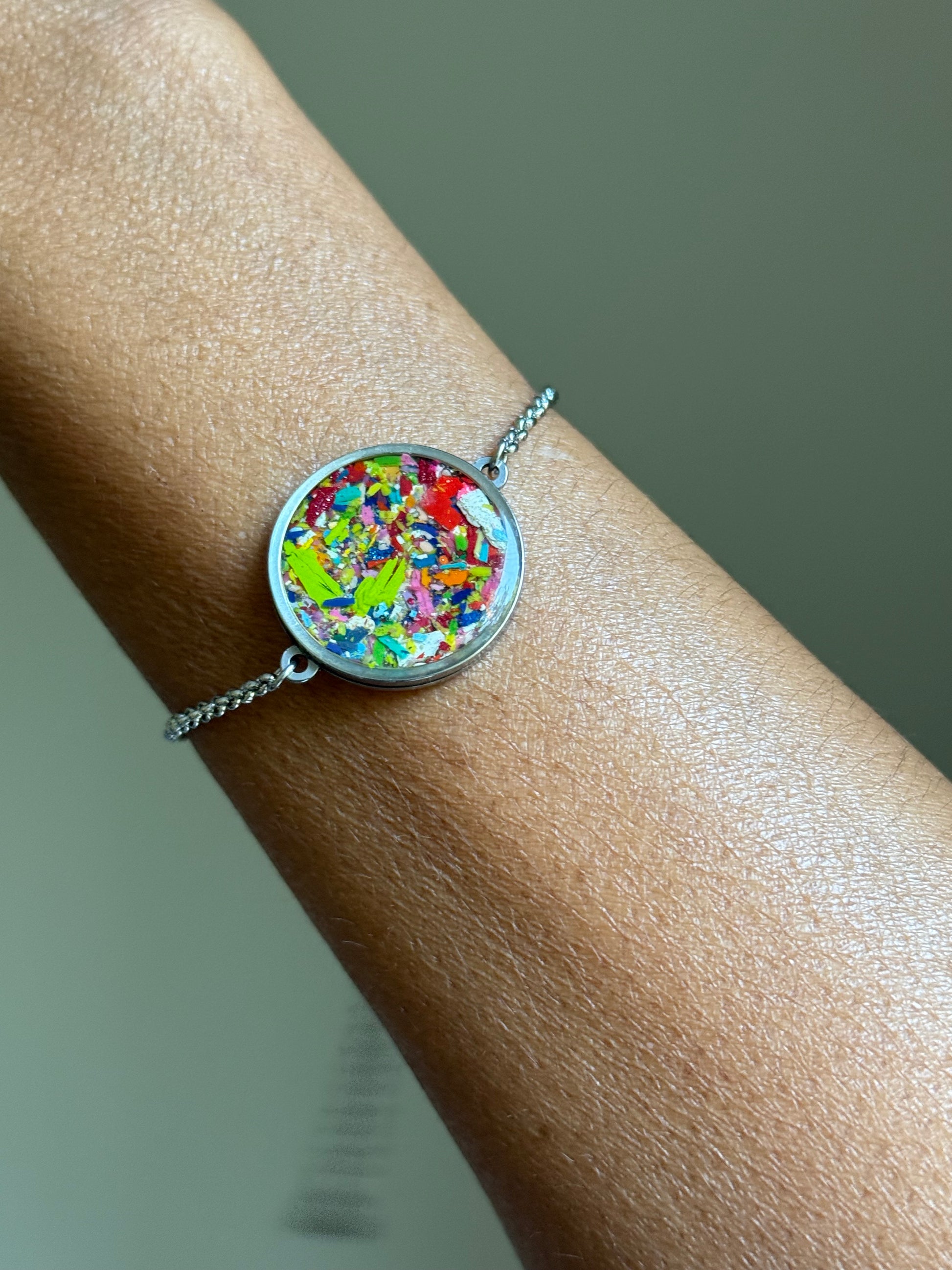 Ce bracelet chaîne en acier inoxydable présente TOUTES LES COULEURS CRAYON DE LA BOÎTE ! Il est multicolore, joyeux et épais ! Portez-le seul ou avec vos bracelets de commande. Il s'agit d'un article fabriqué sur commande - votre combinaison de couleurs sera donc unique pour vous.