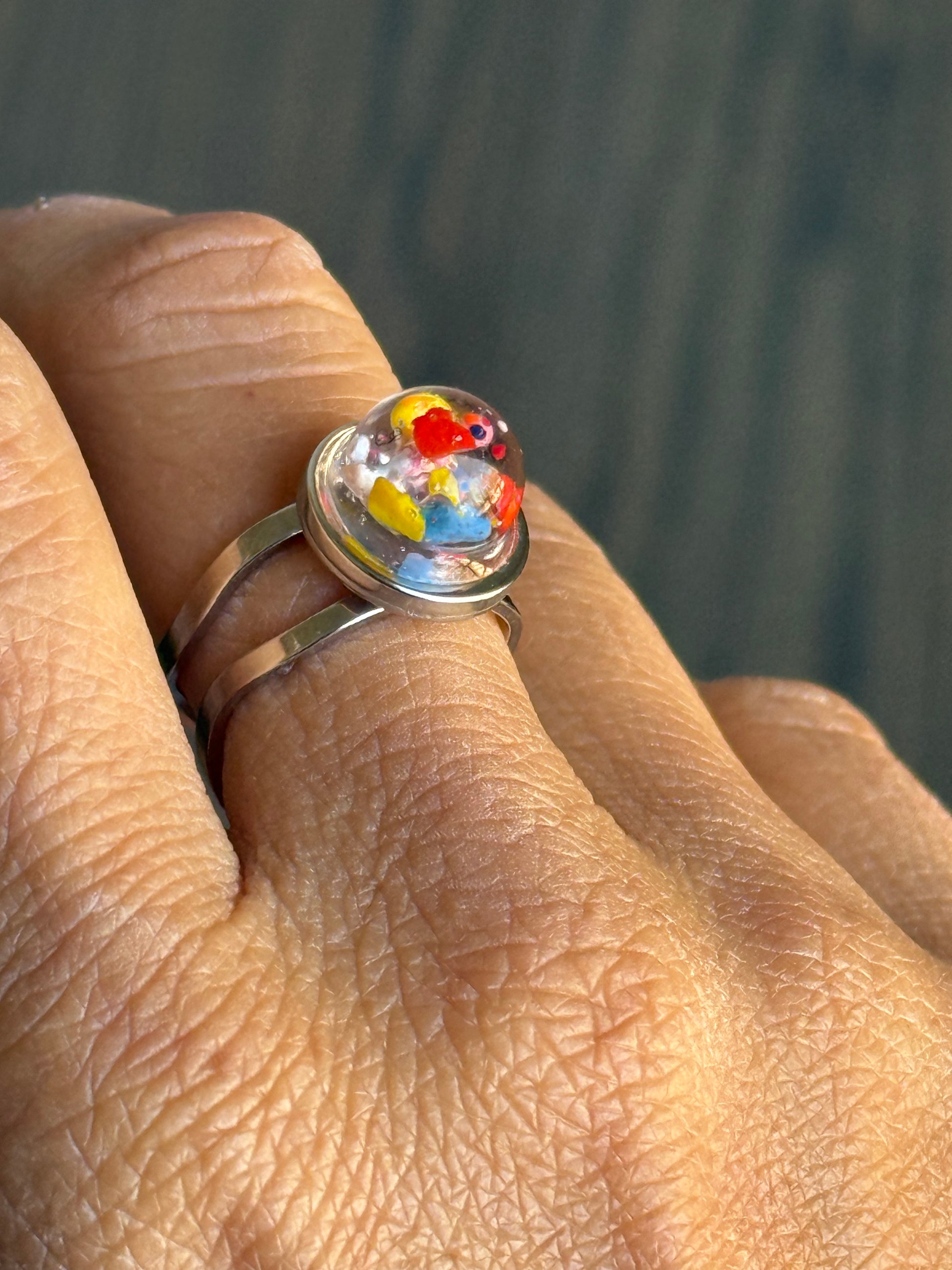 Inspiré des boules à neige de ma fille. Cette bague sphérique multicolore est une pièce accrocheuse que vous adorerez absolument.