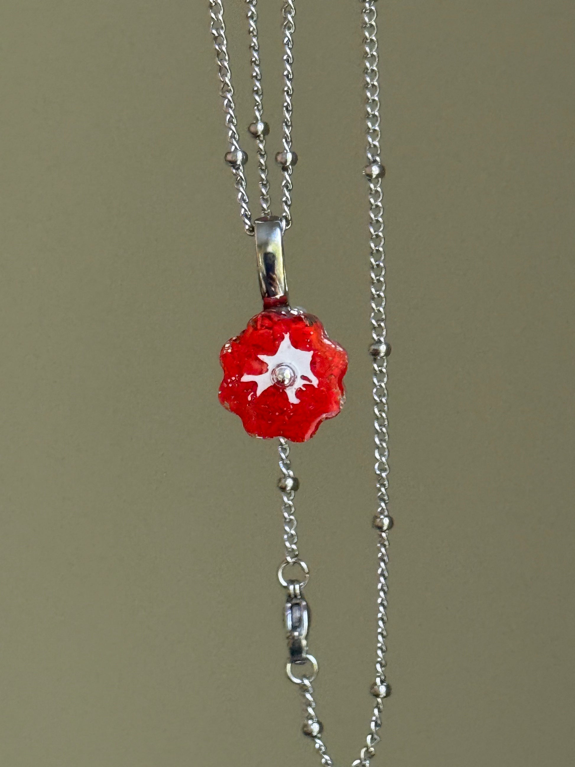 Do you love flowers? Then you will love wearing this crayon bloom pendant.