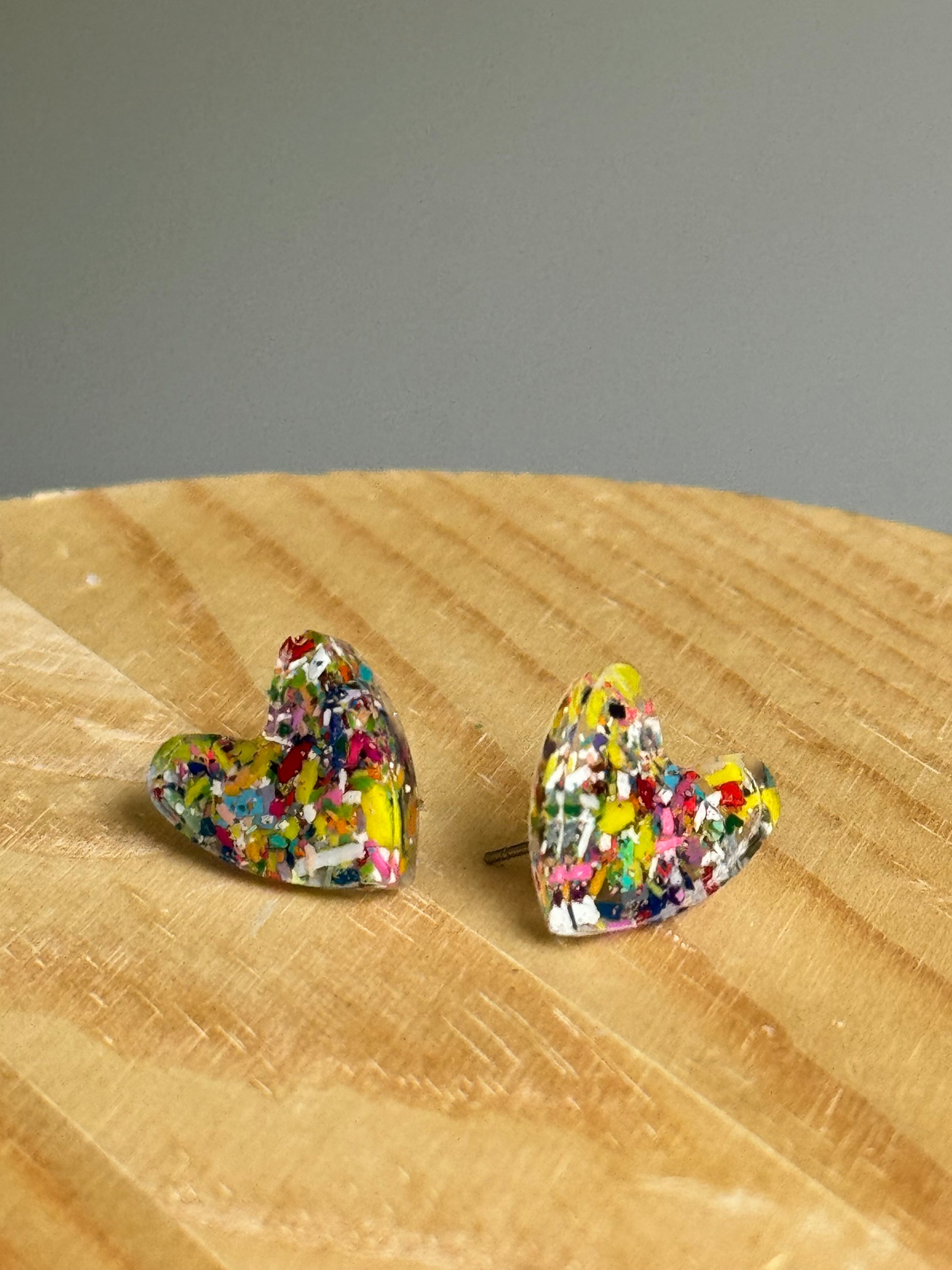 Multicolored Resin Heart Studs