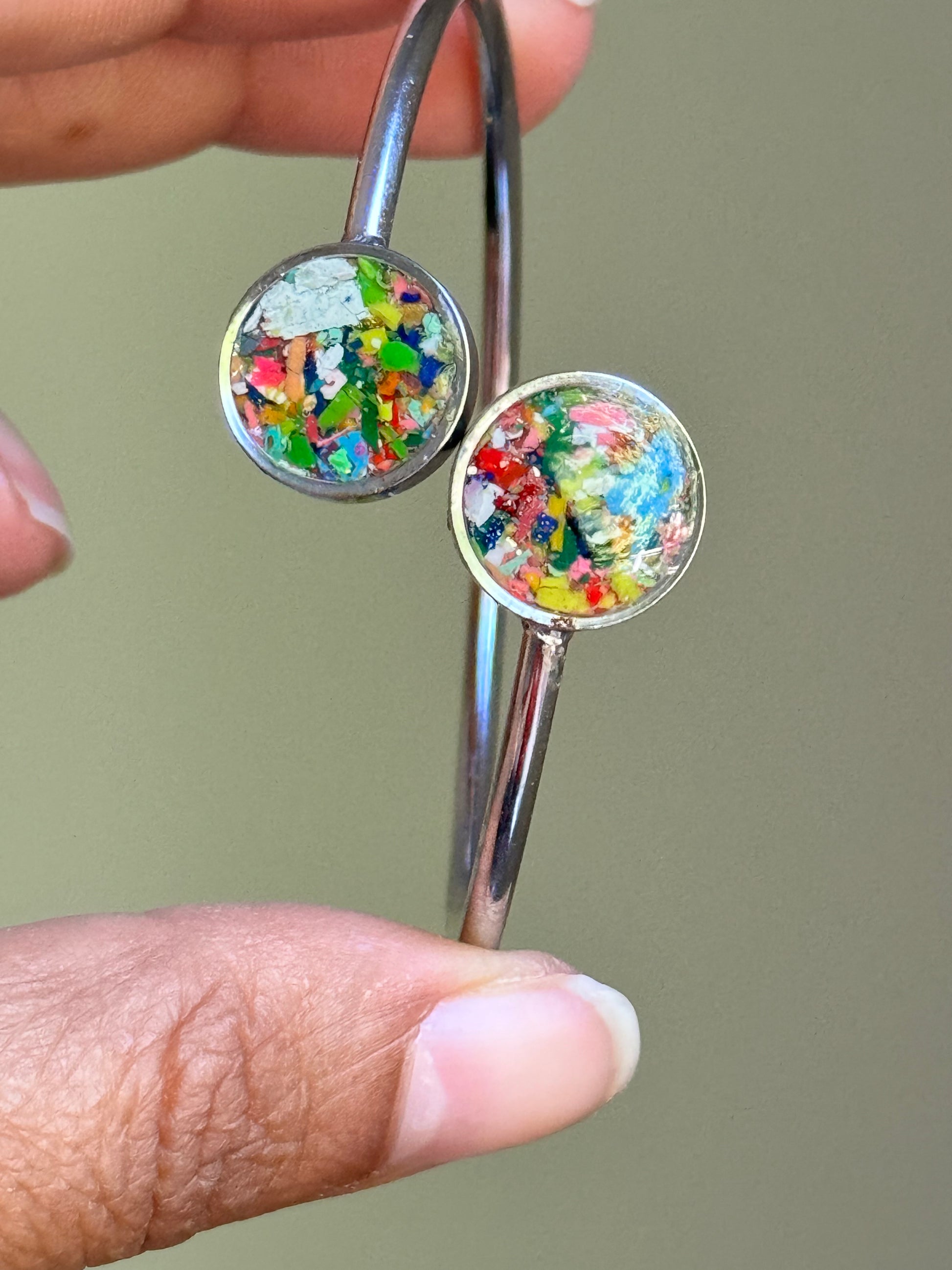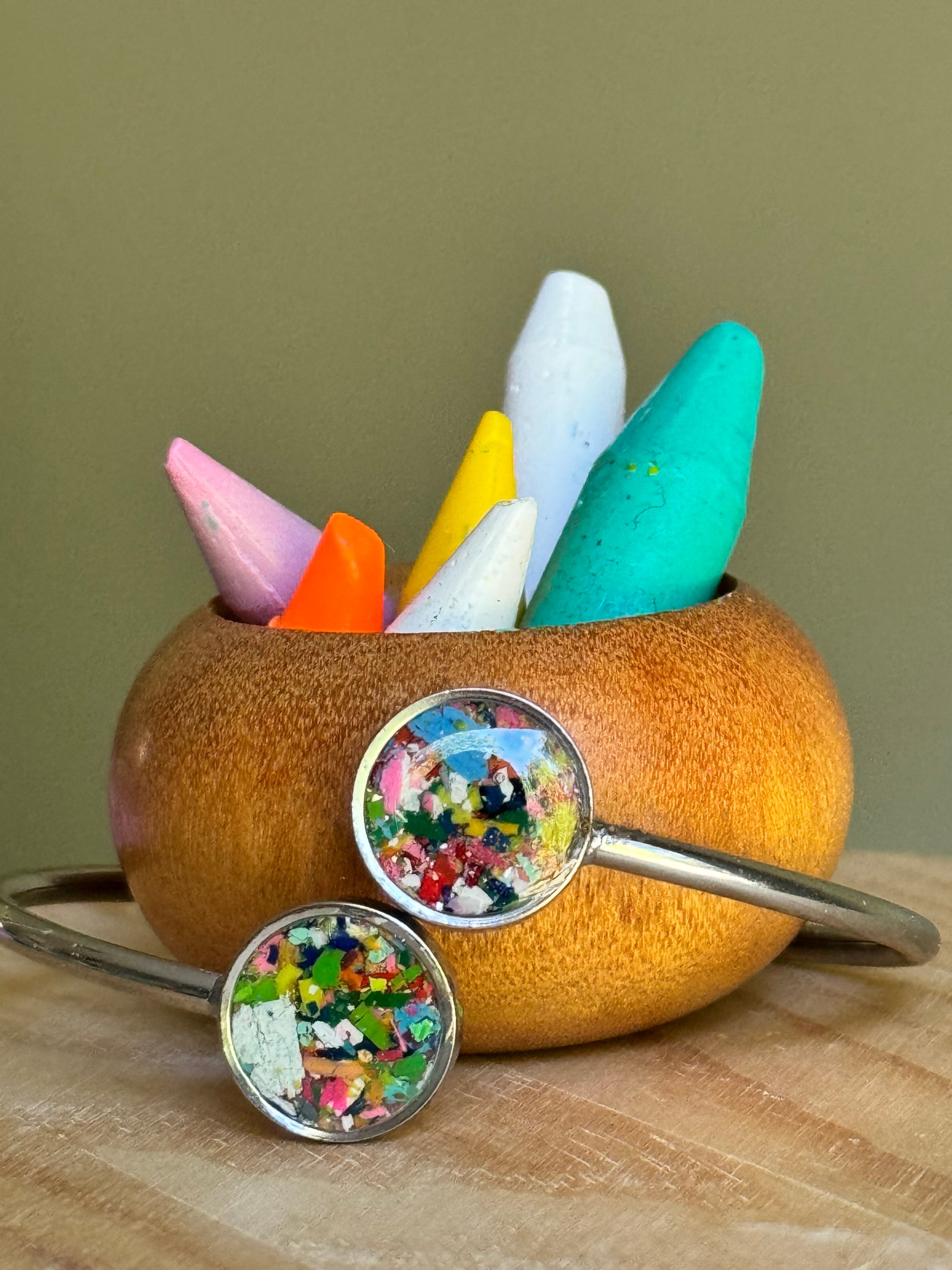 Your bracelet will be as colorful as the one in the picture, but the final colors will vary slightly because we hand-place all the crayon shavings. The result will be colorful, fun, and uniquely yours. That’s the beauty of handmade items – no two are the same.