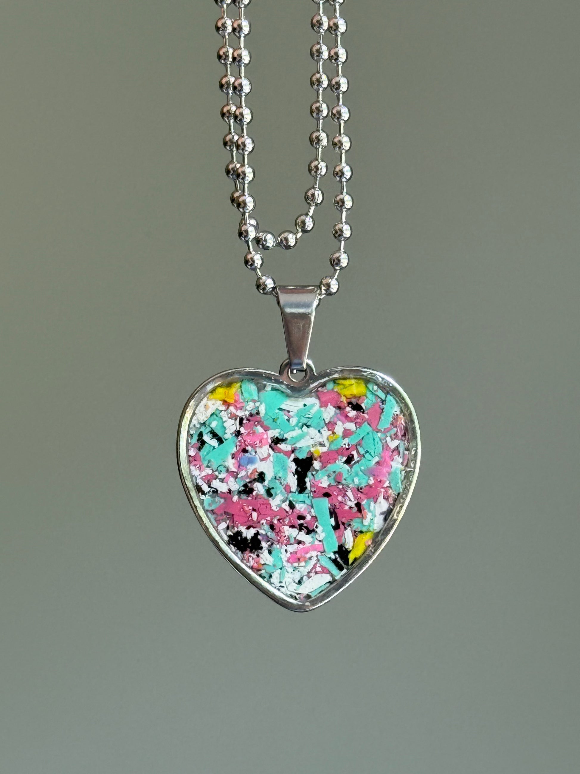 Celebrate giving with our Crayon Pendant. Â Big heart, bigger purpose! Our Crayon Pendant is a promise of joy and generosity. This large heart-shaped pendant adds a playful pop to any outfit while carrying a beautiful mission - to support kids and teachers in Atlanta.