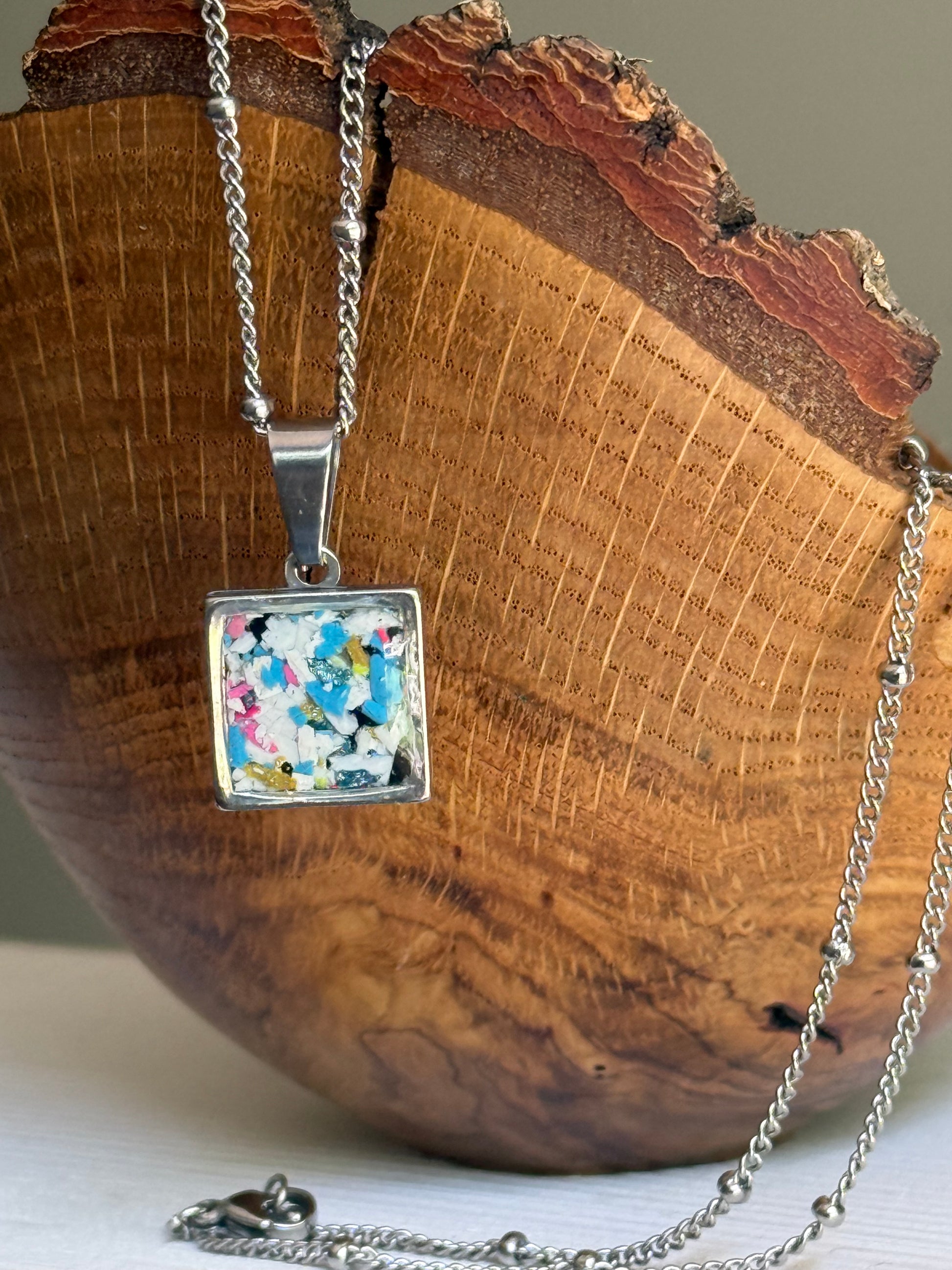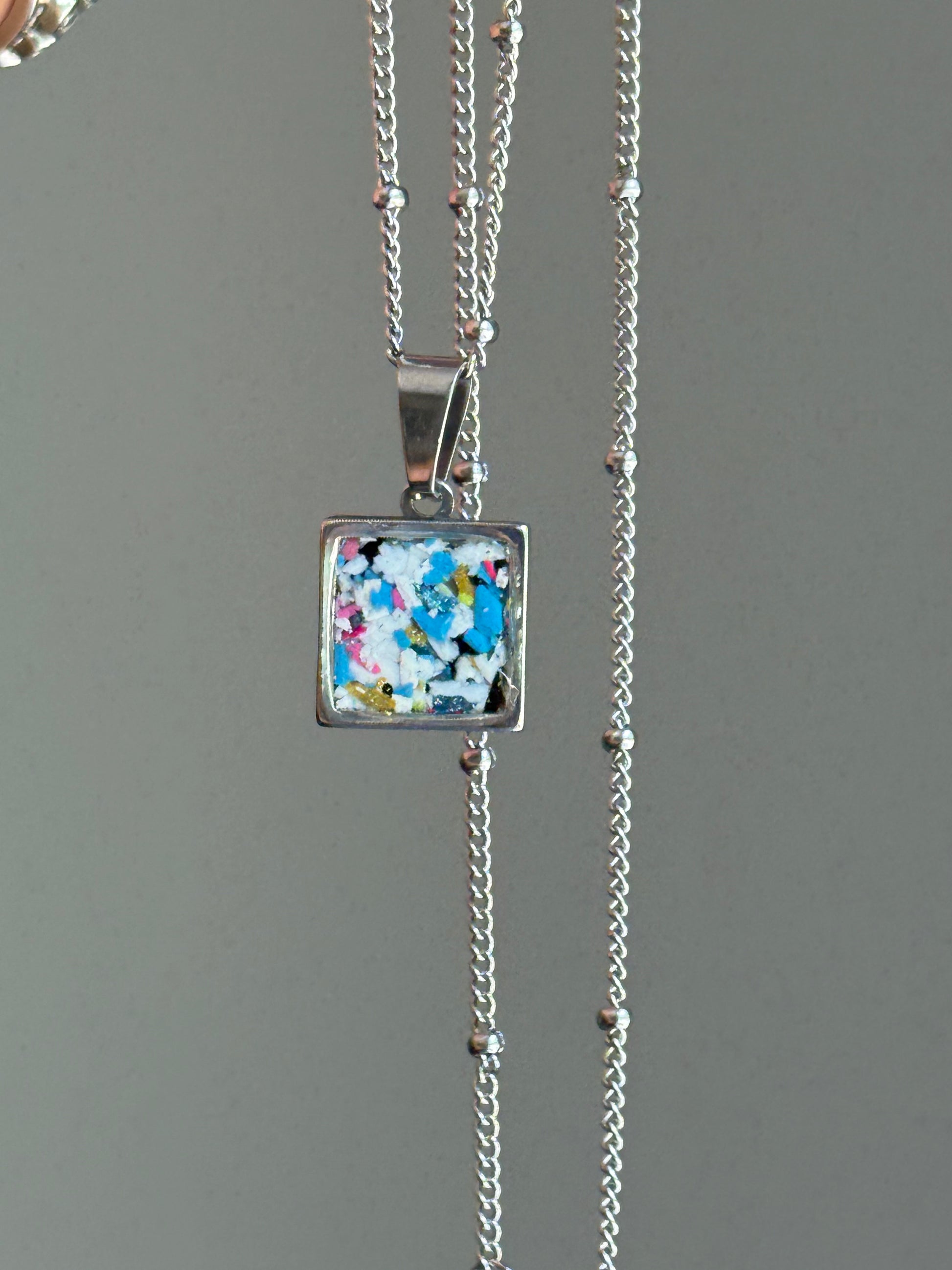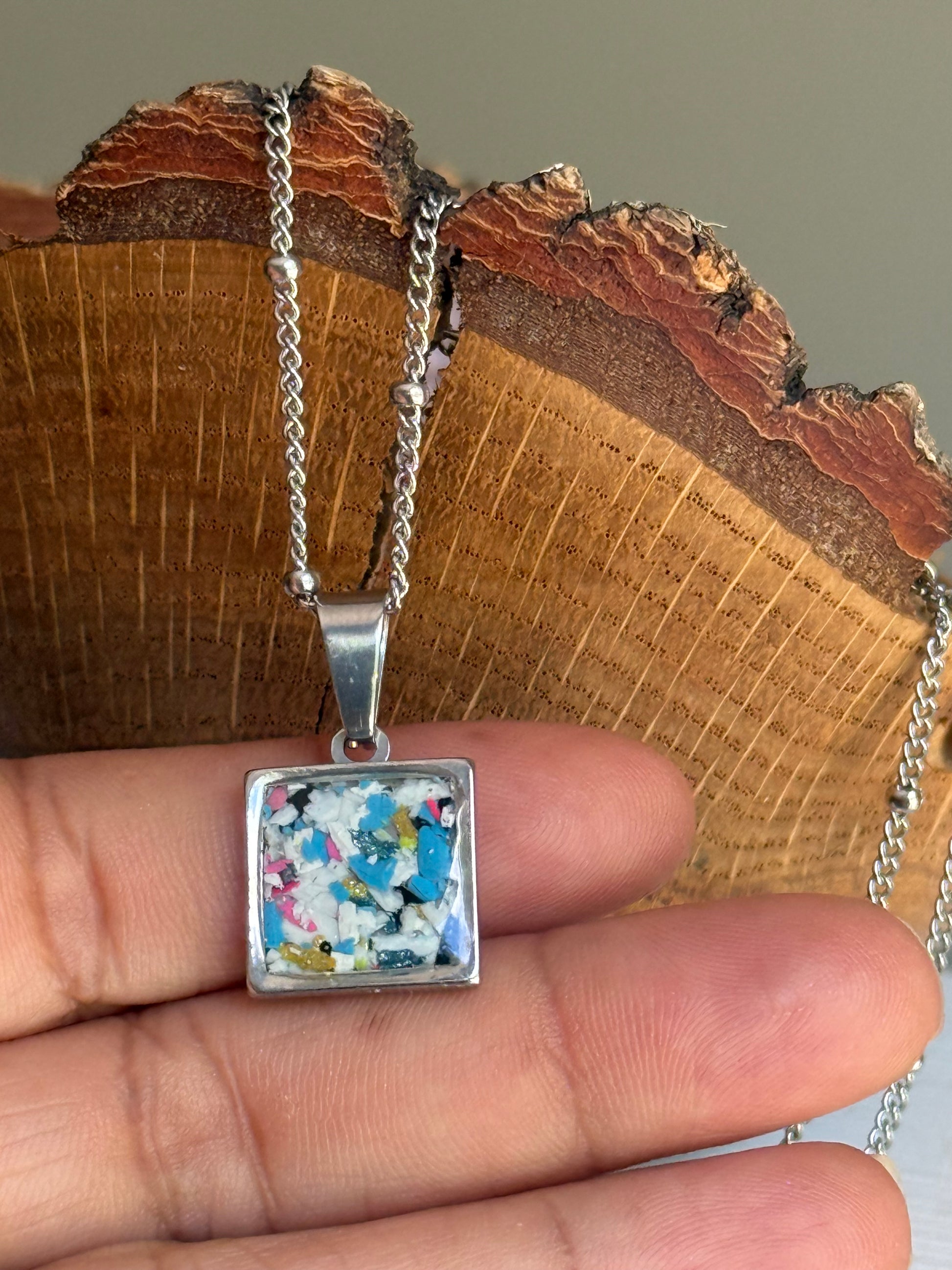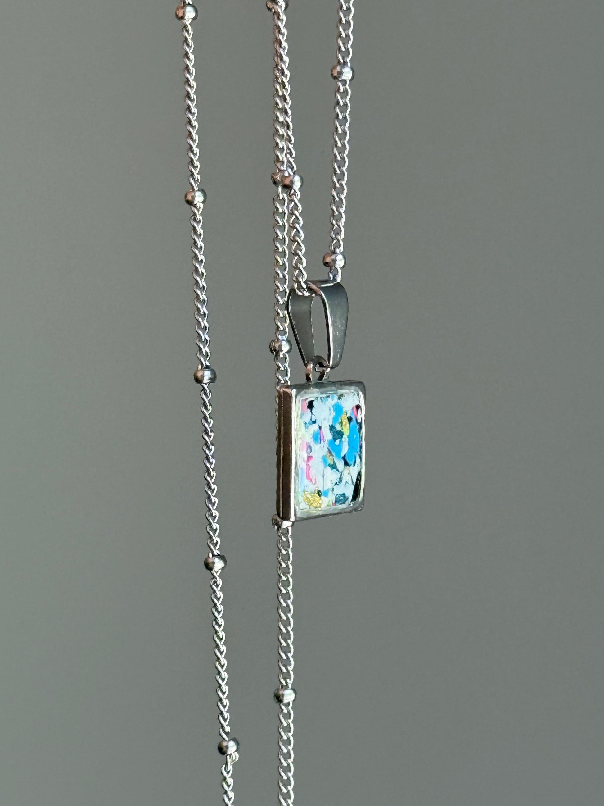 For everyone and anyone! Introducing our small, square stainless steel pendant. This pendant is meant to be a kiss of color. A little treasure of art you can wear alone or layer with your existing necklaces.