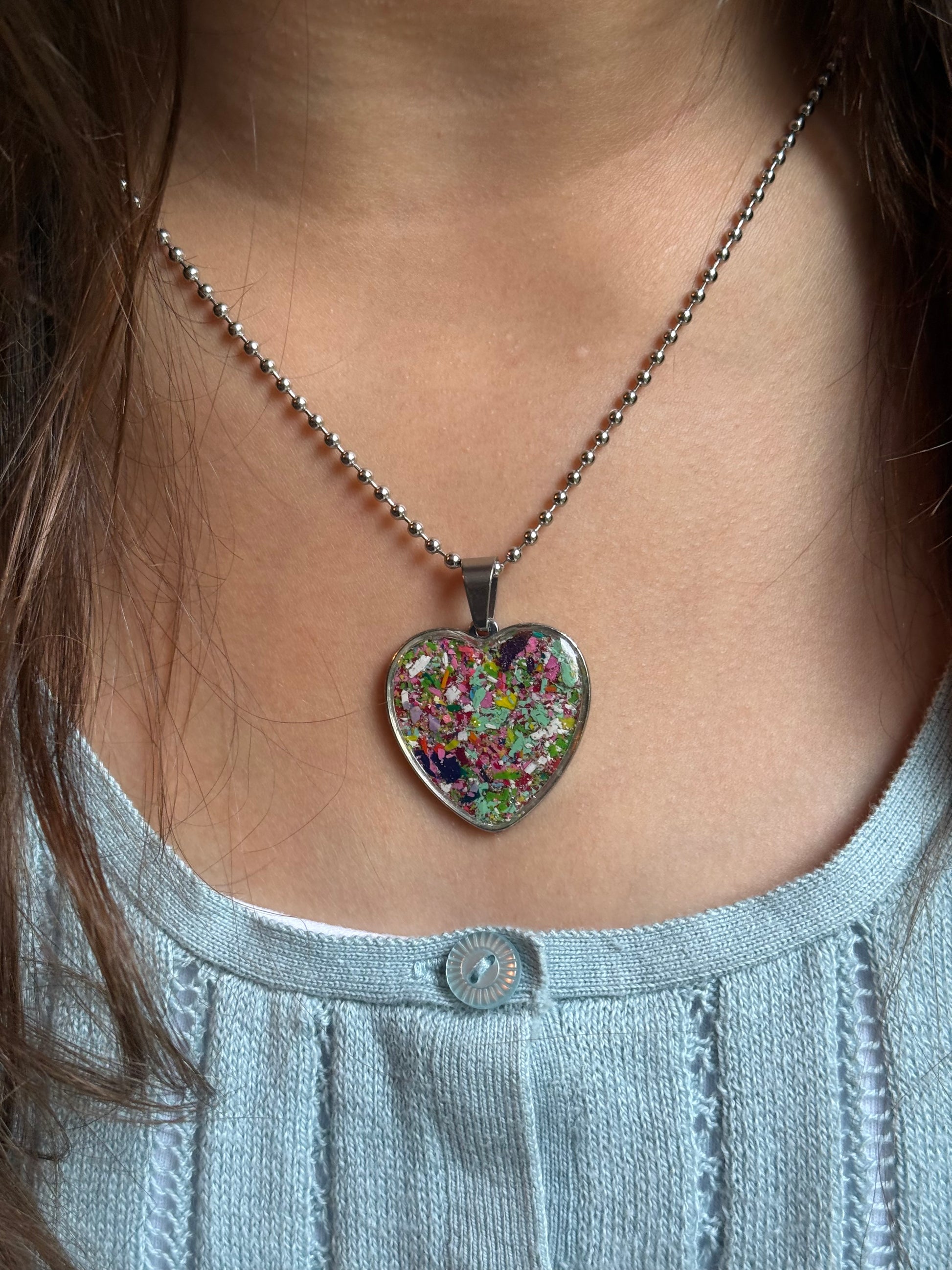 Celebrate giving with our Crayon Pendant. Â Big heart, bigger purpose! Our Crayon Pendant is a promise of joy and generosity. This large heart-shaped pendant adds a playful pop to any outfit while carrying a beautiful mission - to support kids and teachers in Atlanta.