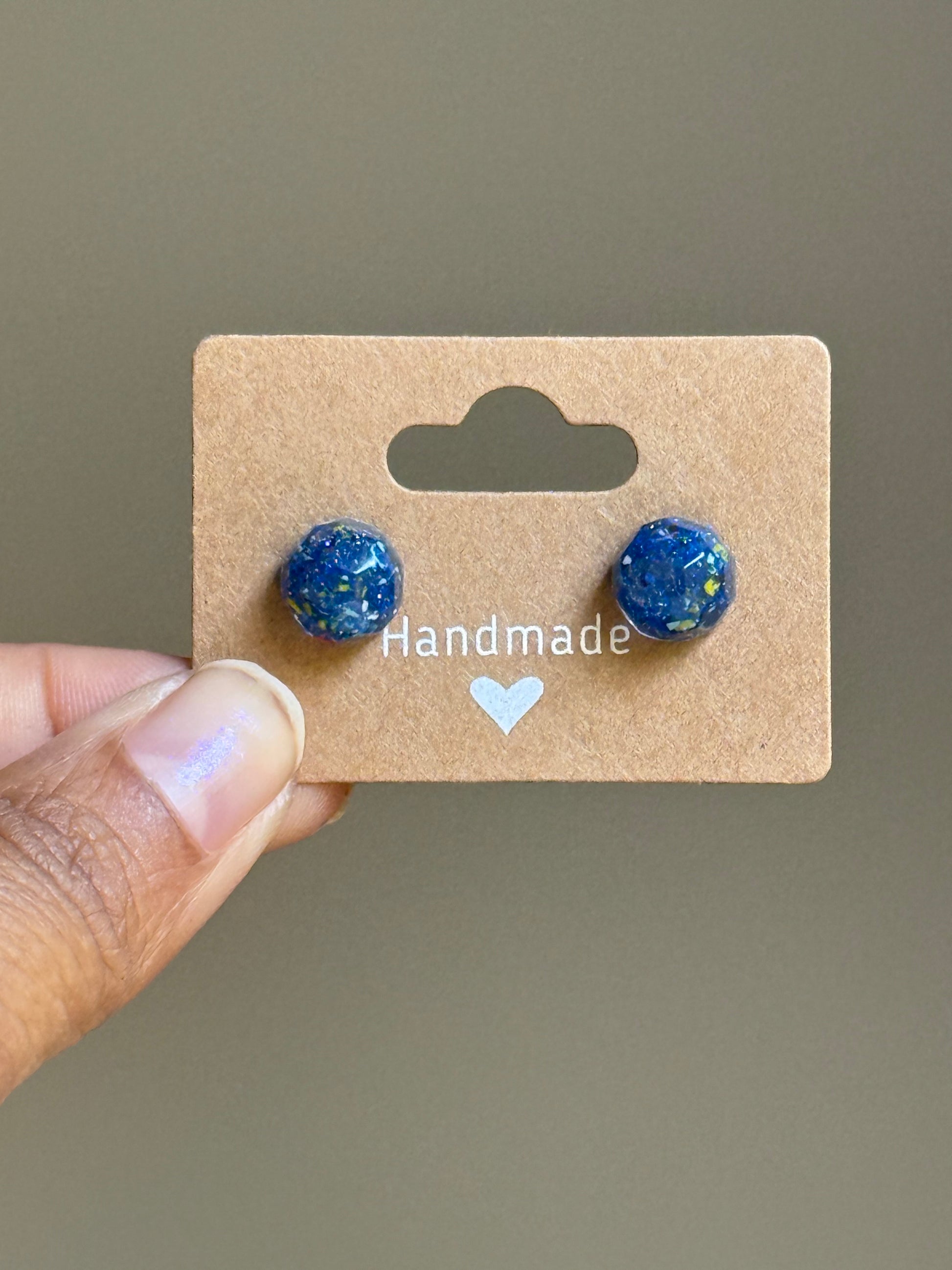 These small resin studs look like little gems! Created with recycled crayons, each pair is colorful and gentle on your ears due to our hypoallergenic posts.