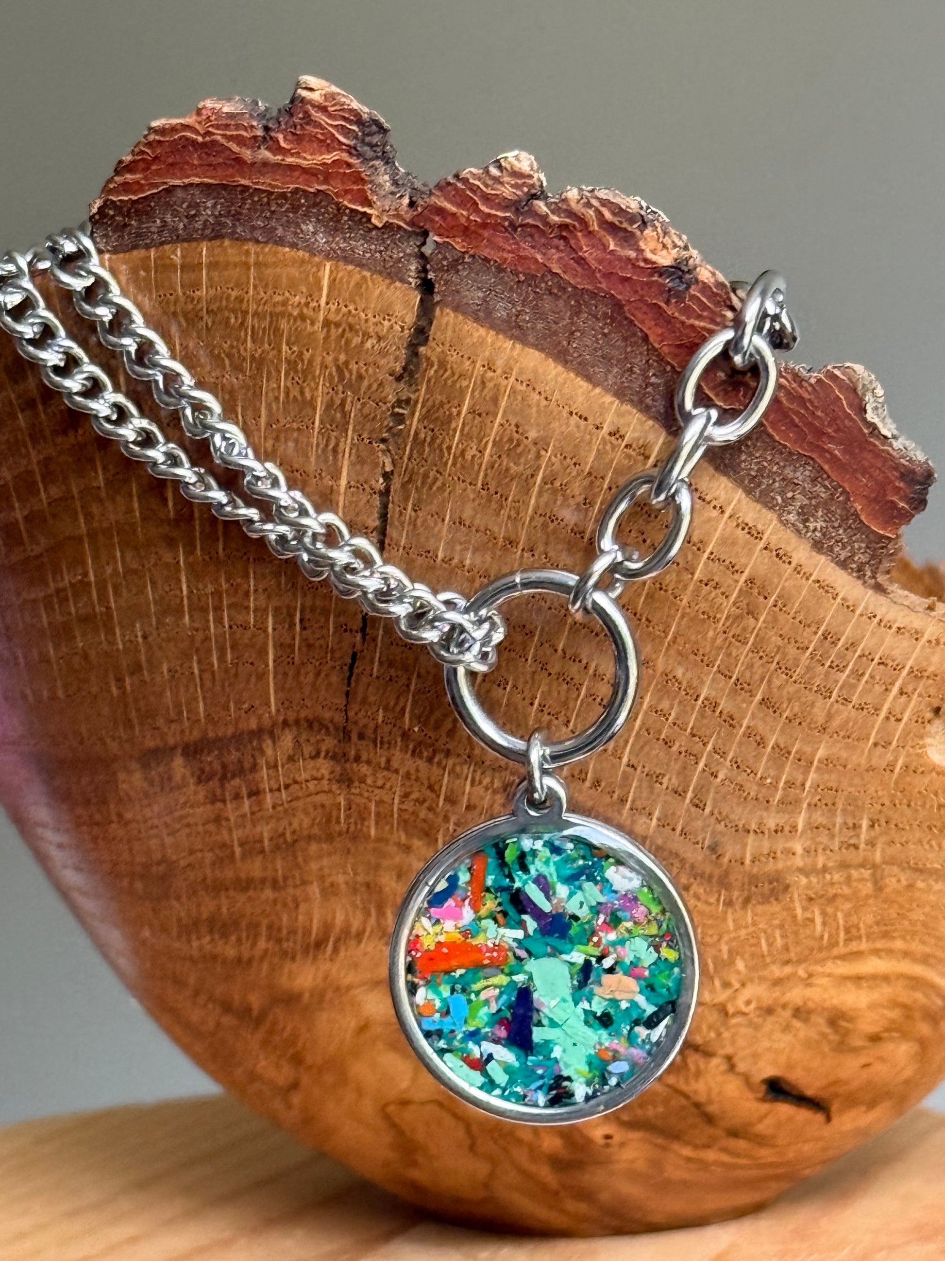 This stainless steel chain bracelet is full of beautiful purple and violet crayon hues, along with a few other colors. Go for this bold, fun and joyful chain bracelet. Wear it alone, or with your other bracelets.